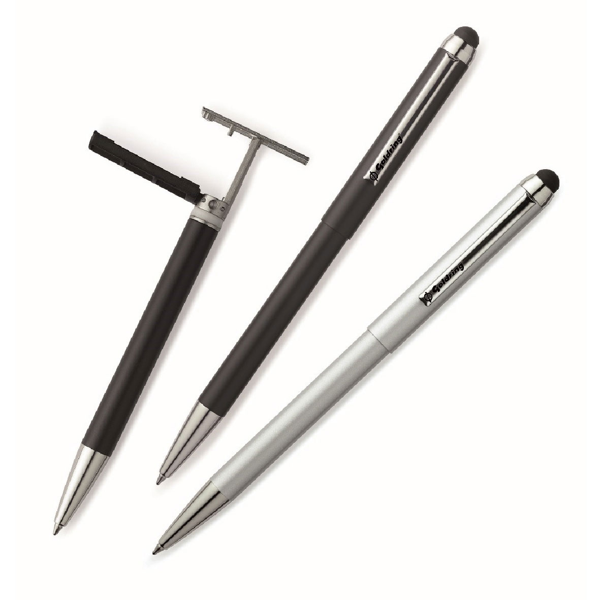 一端是笔,一端是印章,集书写、印章、名片为一体,是最新流行的利用高新技术及新型材料精致而成的现代文化用品。 印章端采用回墨印章,印记清晰。 一次注油可盖印万次,印章可盖在客人的通讯录上,不像名片一样容易丢失。 印章体内自带的印油用完可加滴专用印油后继续使用。另一端为圆珠笔,可更换笔芯。